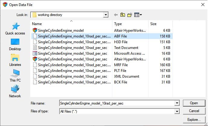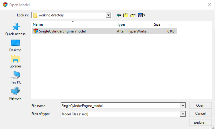 このステップでは、MotionViewモデルファイルを開く方法について学習します。