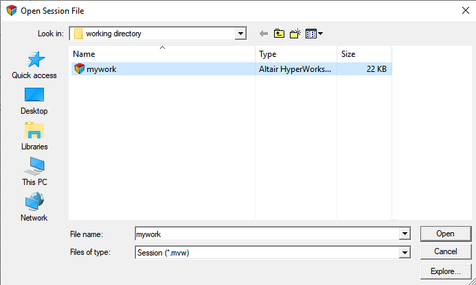 このステップでは、セッションファイルをMotionSolveで開く方法について学習します。