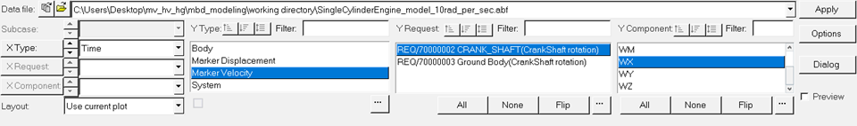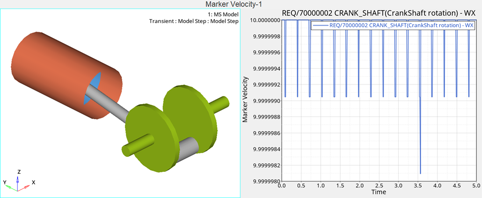 このステップでは、クランクシャフトの回転速度を10rad/secに修正します。