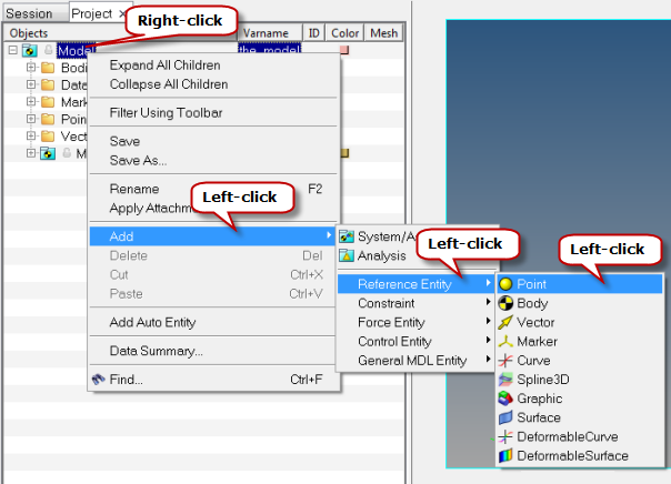 Figure 7.同様に、Model(ブラウザの階層の一番上のフォルダ)を右クリックすると、モデルの構築に役立つオプションを含んだコンテキストメニューが表示されます。