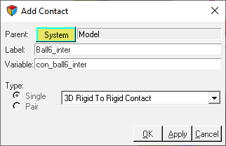 このステップでは、Ball 6とOuter Raceの間、Ball 6とRimの間、Ball 6とInner Raceの間の接触を定義します。