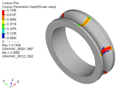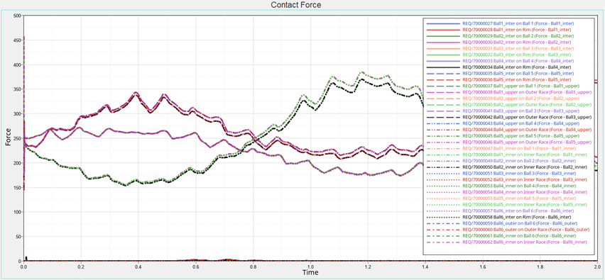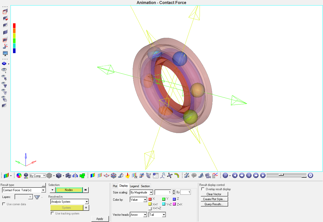 また、過渡解析をセットアップして、これらの形状間の接触力を計算し、接触力リクエストのプロッティングに加え、結果をベクトルプロットとコンター図でポスト処理しました。
