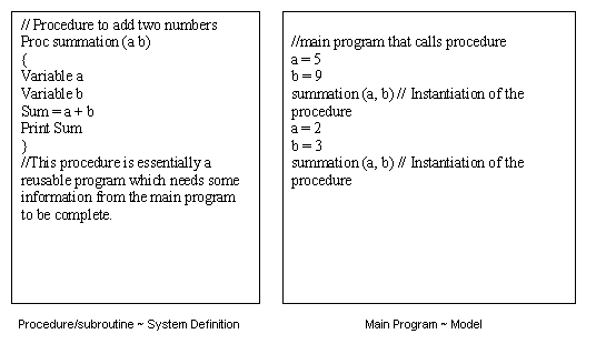 システム定義の概念は、プログラミング言語のプロシージャ / サブルーチンに似ています。