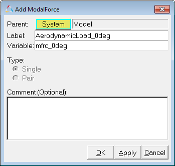 Modal Forceエンティティを介して空力荷重をモデル化します。