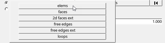 facesボタンの横のドロップダウン矢印をクリックします。サーフェス選択タイプをfacesからelemsに切り替えます。