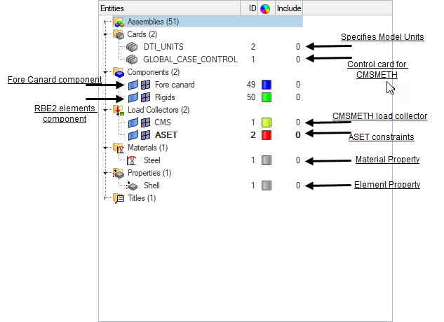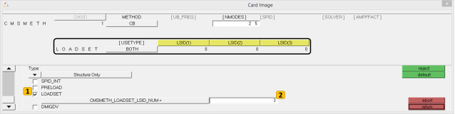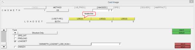 次のカード内でGLOBAL_CASE_CONTROLをクリックし、CMS荷重コレクターがCMSMETHソリューションに指定されていることを確認します。returnを2回クリックします。