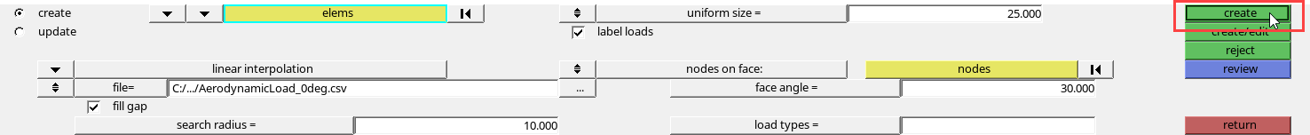 createをクリックし、0deg位置の圧力荷重を作成します。