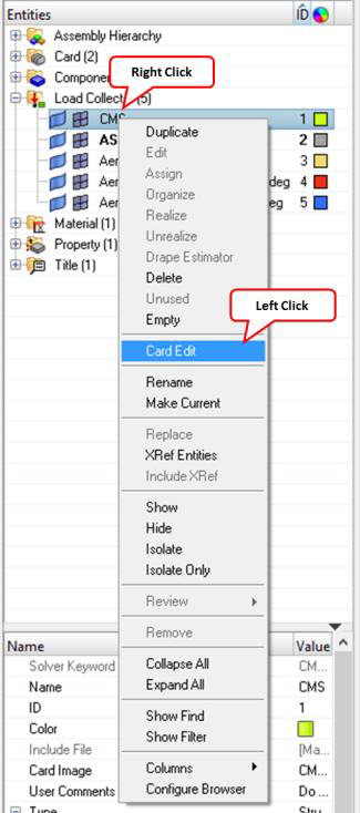 - Entitiesブラウザで、CMS荷重コレクター上を右クリックします。