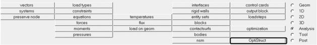 - HyperMeshでユーザープロファイルにOptiStructを選択し、ForeCanard.hmを開きます。