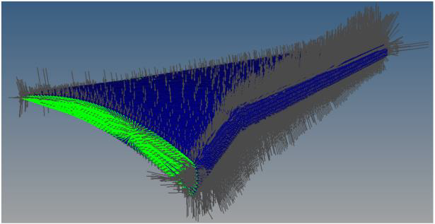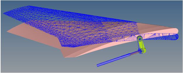 HMファイルには、材料プロパティとコントロールカードが定義された前尾翼のメッシュモデルが含まれています。