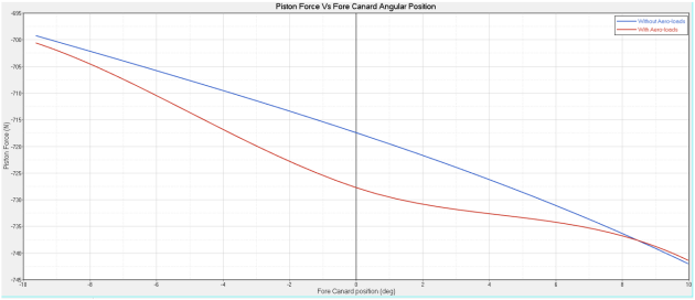 Table 1とTable 2内のデータを使用し、HyperGraphでPiston Force versus Fore Canard Angular Positionをプロットします。