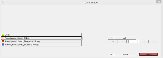 荷重コレクターのリストから、AerodynamicLoad_0degをクリックします。returnボタンをクリックし、CMSカードイメージに戻ります。