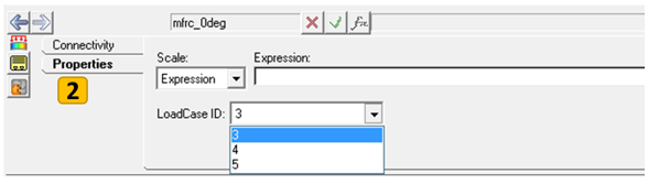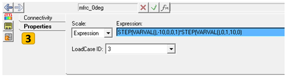 Propertiesタブで、Scale typeをExpression、LoadCaseIDを3、Expressionを`STEP(VARVAL({sv_ang.idstring}),-10,0,0,1)*STEP(VARVAL({sv_ang.idstring}),0,1,10,0)`と指定します。