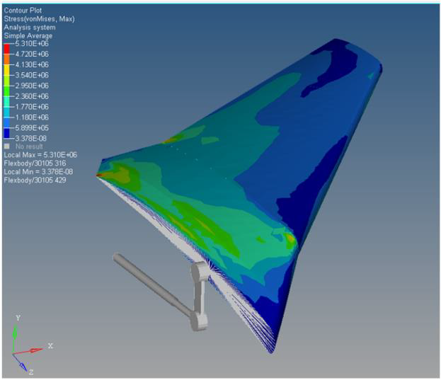 本演習では、OptiStructを使って、空力荷重を伴う航空機の前尾翼の弾性体を作成します。1 atm pressureで気流速度200m/secにおける前尾翼の3つの動作位置-10 deg、0 deg、10degの空力荷重が、AcuSolveを使ったCFDシミュレーションから用意されています。演習の後半では、MotionSolveでこの弾性体をアクチュエーター機構に埋め込み、前尾翼の動作に必要とされるアクチュエーターの荷重を見積もります。
