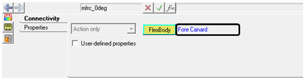 Connectivityタブで、FlexbodyにFore Canardと指定します。