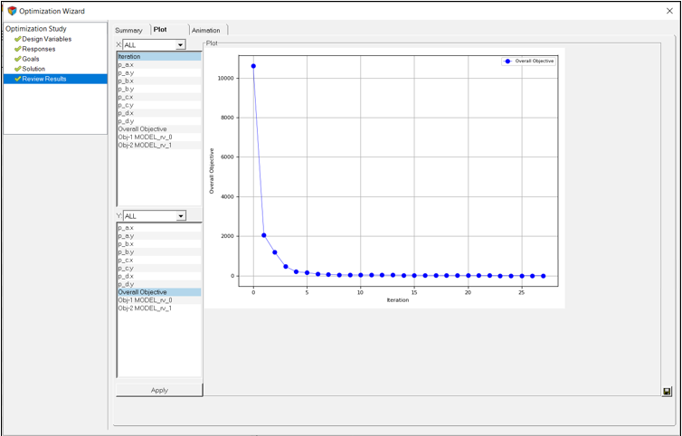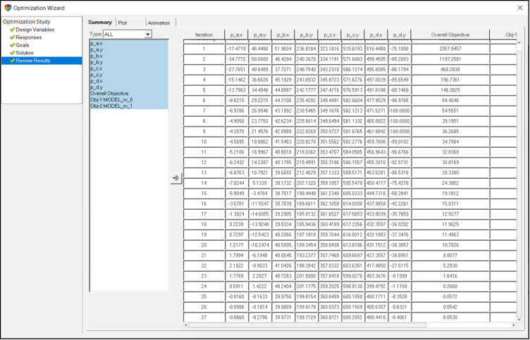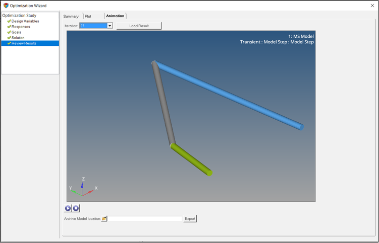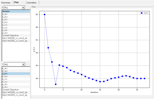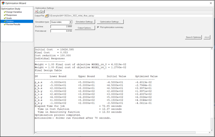 このステップでは、MotionSolveの強力な機能を使用し、失敗した反復計算からリカバーすることで最適設計を取得します。
