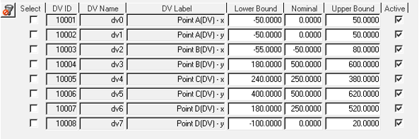 モデル全体がこれら4つの設計ポイントA、B、C、Dの形でパラメータ化されます。モデルは2D空間(X-Y面)で作動するため、結果的に設計変数は8つになります。初期の設計はTable 1のようにリストされます: