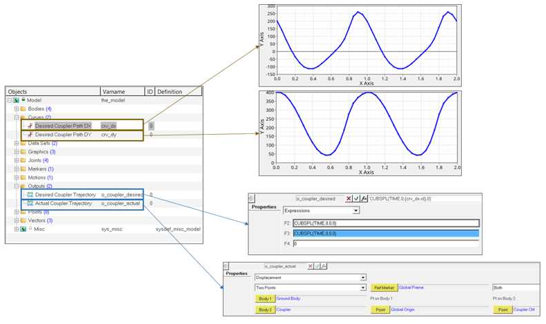 - 本チュートリアルでは、4つのリンクから成る機構のジョイントの位置を最適化し、カプラーの希望する運動を取得します。感度の計算には、MotionSolveのDSA(Design Sensitivity Analysis: 設計感度解析)機能が使用されます。