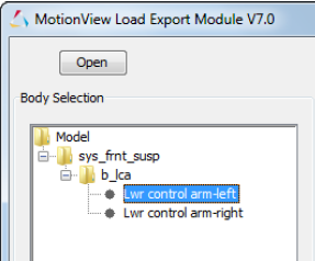 - このユーティリティを使用するには、荷重が処理されるべきコンポーネントをMotionSolveモデルで指定する必要があります。これは、以下のいずれかの方法で行います: