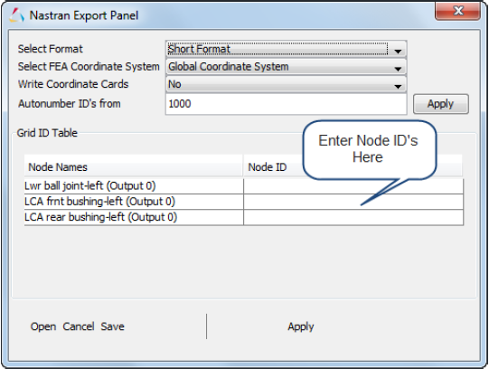 このステップでは、Load Exportユーティリティを使用し、Nastran入力デックを生成します。