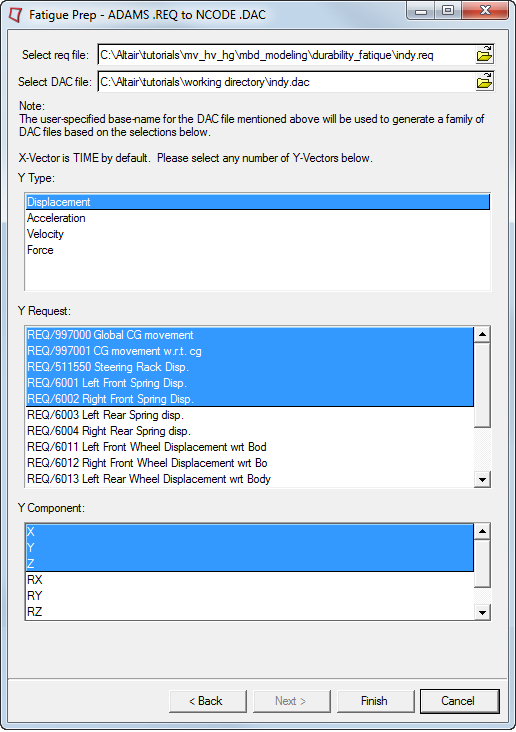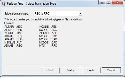 このステップでは、Fatigue Prepトランスレーターを使用し、ADAMSの実行結果をDACファイルに変換します。