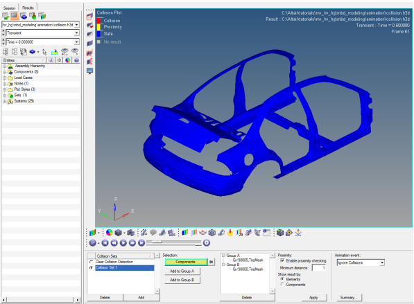 Tip: このツールバーがデフォルトで表示されていない場合は、menu barに進み、View > Toolbars > HyperView > Toolsを選択します。これで、Collision Detectionパネルが表示されます。