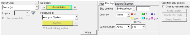 Figure 1. Vectorパネル - Result typeの下でForce (v)を選択します。