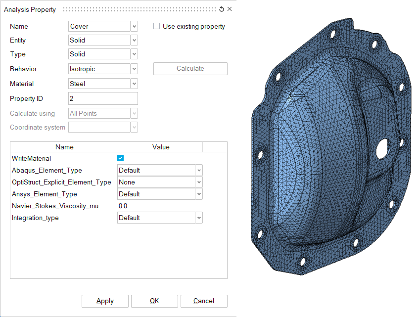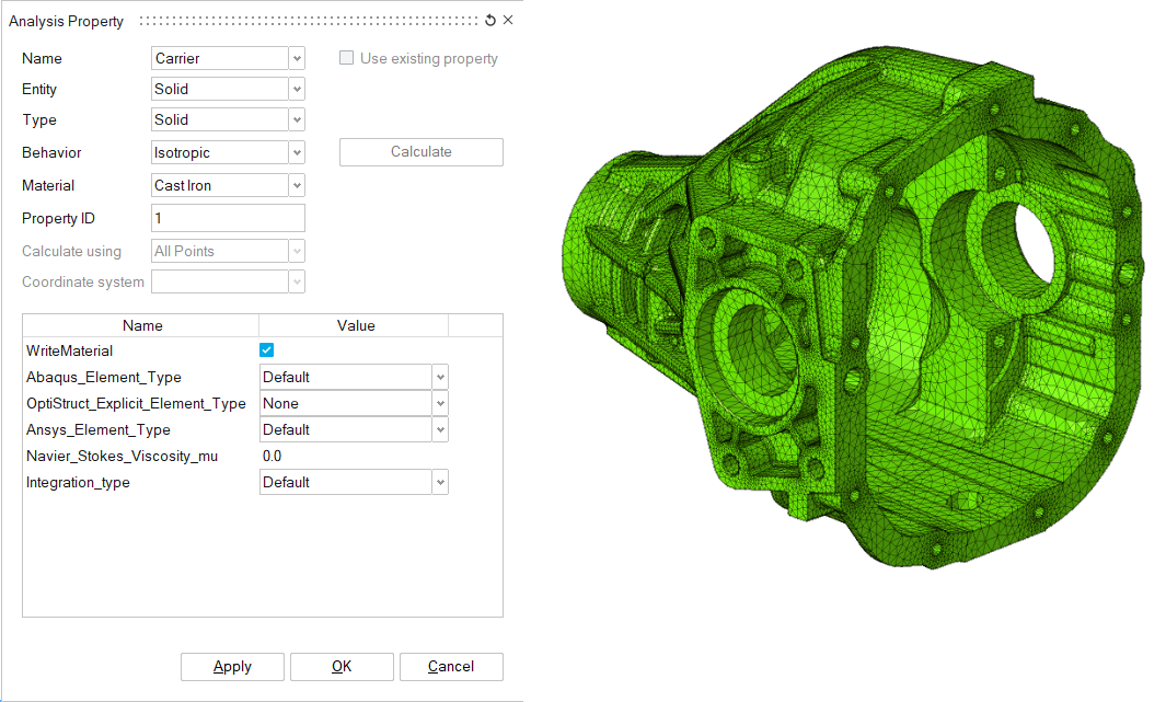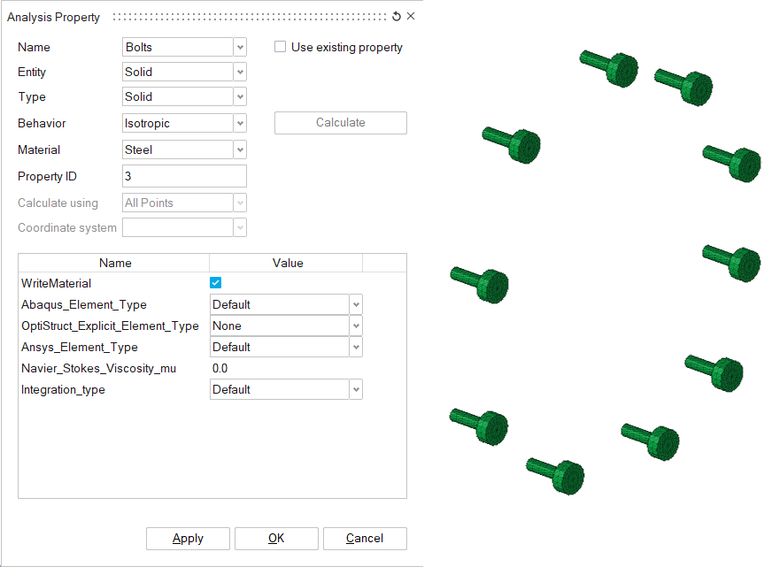本ステップでは、CarrierボディとCoverボディの両方にCast Ironプロパティを、BoltsにSteelプロパティを割り当てます。