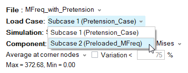 本ステップでは、Preloaded_MFreqサブケースの異なる周波数における結果の変位のグラフをプロットします。