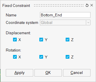 The Ring_Z and Bottom_End constraints are added to the current Loadcase.