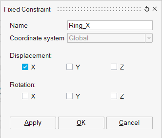 Figure 21. Constraint for the Ring Body Along X Axis -