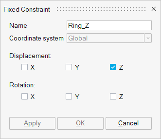 Figure 18. Constraint for the Ring Body Along Z Axis -