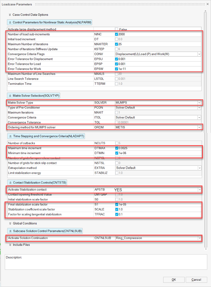 Figure 34. Set the Values for Loadcase Parameters for Ring_Compression Loadcase -