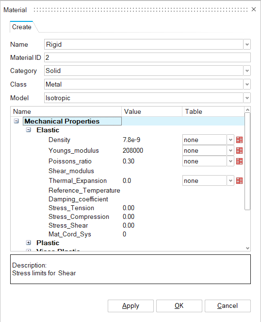 Figure 3. Creating Rigid Material