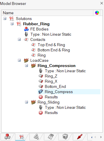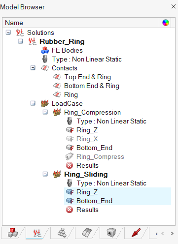 - In the Solutions tab of the Model Browser, right-click on the Ring_Sliding loadcase and select Set Current from the context menu.