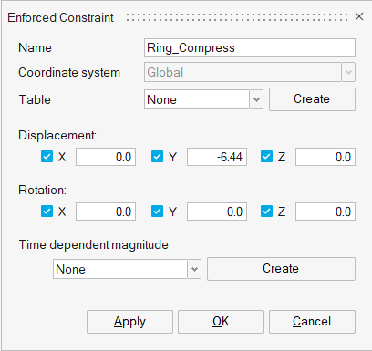 Figure 28. Enforced Displacement for Ring_CompressionThe Enforced Displacement is added to the Ring_Compression loadcase.