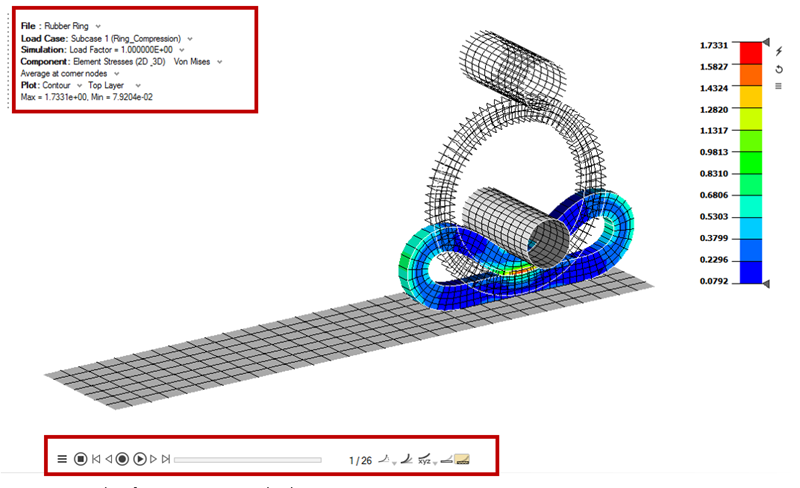 Application of boundary conditions and a finite element analysis of the problem are explained. Post-processing tools are used to determine stress developed during crushing and sliding of a rubber ring.