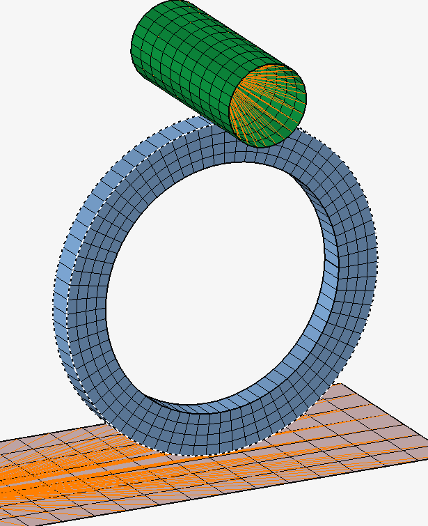 Contacts are created between the Ring and End Faces to simulate the Compressing and Sliding action of the ring against the Top and Bottom Ends.