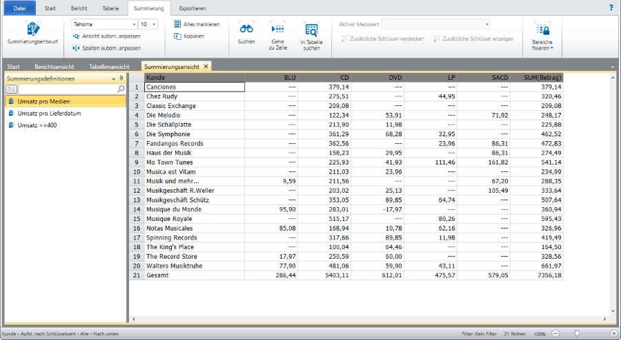 Registerkarte „Summierungen“