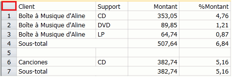 Sélection du tableau dans son intégralité – Pour choisir tout le tableau, sélectionnez la cellule figurant en haut à gauche du tableau :