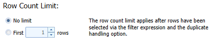 Select the First n Rows radio button (this radio button appears in the Row Count Limit group box at the bottom left of the dialog):
