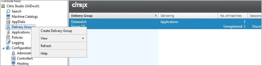 From the tree on the left-hand page of Citrix Studio, right-click on Delivery Groups and, from the menu that displays, select Create Delivery Group.