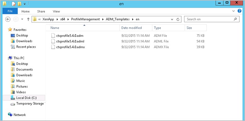 In the machine installed with Monarch, locate the ADM template file (C:\XenApp\x64\ ProfileManagement\ADM_Templates\en) and copy the files to this folder.