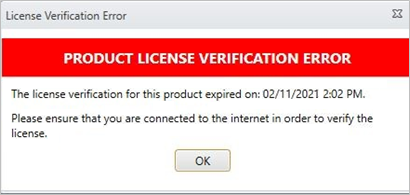 If you wish to verify your license, ensure that you are connected to the internet prior to clicking "Yes" on the dialog.