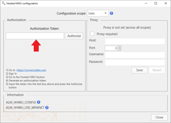 Click the Configure button in the Altair License Server Connection screen that displays.