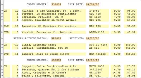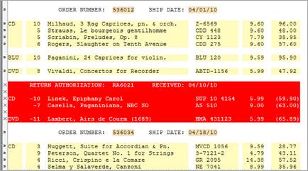 Figure 8-27. Page 4 of the Classic.prn report includes Return Authorization entries.