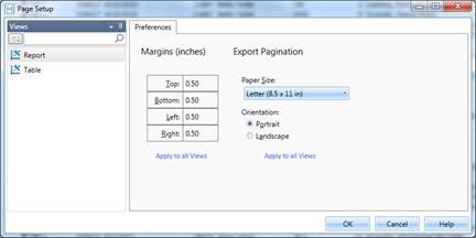 Note that because you have both a report and a table open in the current Monarch session, the Page Setup dialog slightly differs from the dialog we saw in Chapter 6.