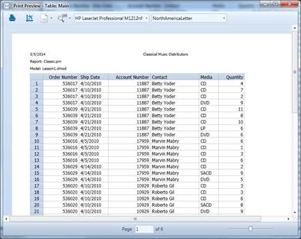 Before we begin, ensure that you have the Classic.prn report and Lesson1.dmod model open and that you are in Table view.