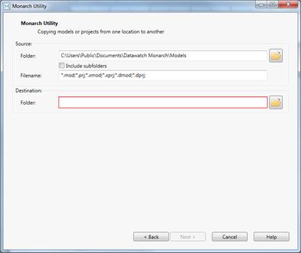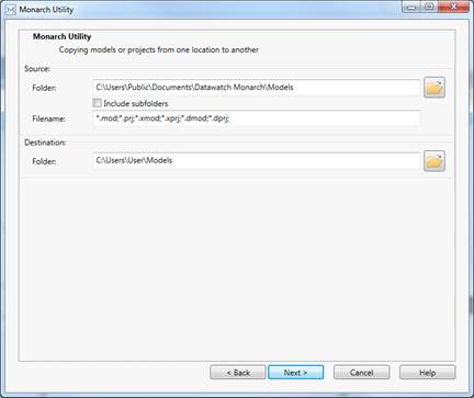 Figure 24-1. Monarch Utility allows users to copy models and projects from a source folder to a destination folder.