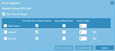 When opening Excel files, the Excel Explorer dialog displays.